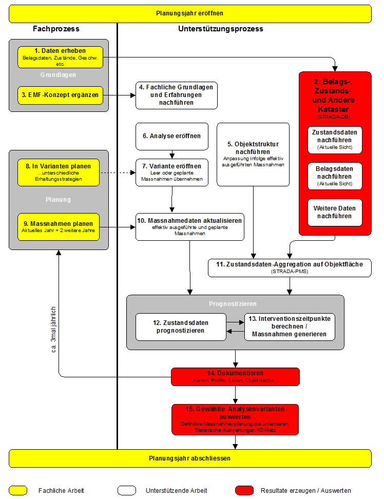 R+P konfiguriert dazu das Zusatzmodul STRADA-EMF entsprechend und setzt es zu Gunsten des Kantons Zug ein. Dieses Modul wird dazu von R+P mit einem einfachen Prognosetool ergänzt. Die erarbeiteten Ergebnisse unterstützen die Fachpersonen des Tiefbauamts in einer leicht nachzuvollziehenden Art und Weise. Damit wird ihre Effizienz und Effektivität spürbar erhöht.